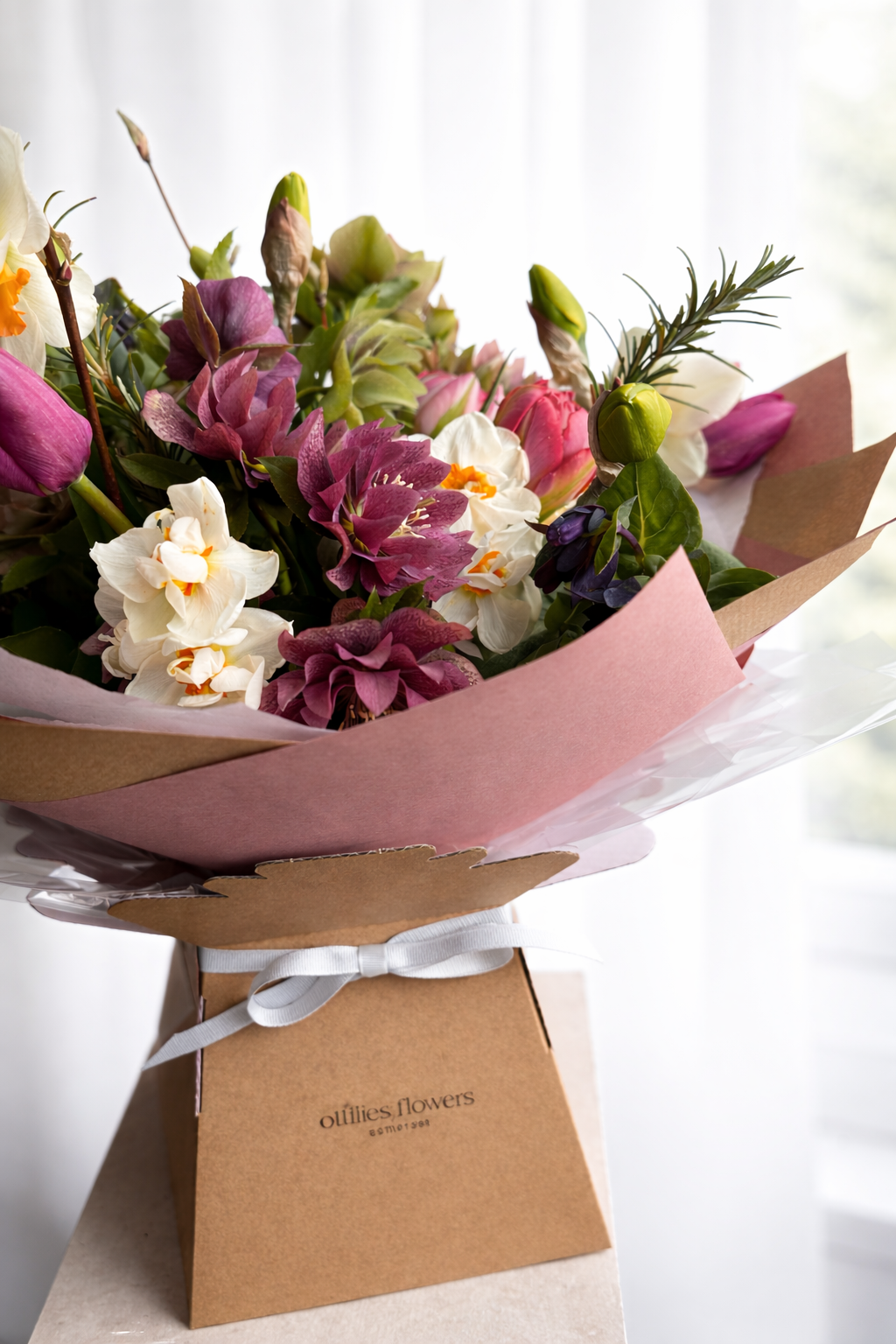 The bouquets will come aqua packed and gift wrapped in tissue paper and kraft living vase finished with Ribbon and an optional gift card.